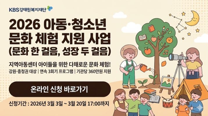 [강원/대전/세종/충청]2026 아동‧청소년 문화 체험 지원 사업(문화 한 걸음, 성장 두 걸음)