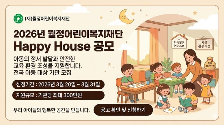 ![[전국]2026년 월정어린이복지재단 Happy House 공모](https://kpang.kr/ptestiwa/2026/03/월정해피.jpg)