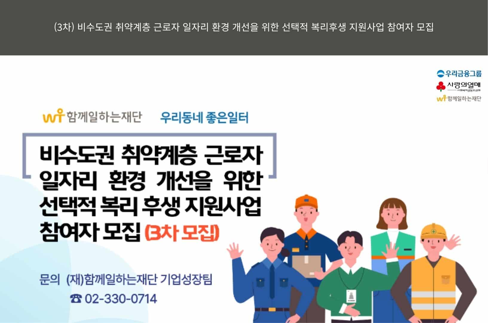 [전국](3차) 비수도권 취약계층 근로자 일자리 환경 개선을 위한 선택적 복리후생 지원사업 참여자 모집