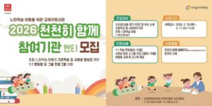 2026 천천히 함께 참여기관 멘티 모집은 초등 느린학습 아동을 대상으로 기초학습 능력과 사회성 향상을 지원하는 교육지원사업이다. 수도권과 부산 지역의 학교 및 사회복지기관을 통해 신청하며, 1:1 학습 멘토링과 사회성 그룹 프로그램을 제공한다. 사전·중간·사후 진단을 통해 변화를 점검하고, 학습 교재와 장학물품도 함께 지원하는 연간 프로그램이다.