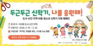 2026년 KB 희망 굿데이 ‘두근두근 신학기, 나를 응원해!’ 사업은 도서·산간 지역 사회복지시설 이용 아동·청소년 100명을 대상으로 신학기 물품을 지원하는 사업이다. 아동 1인당 20만원 상당의 책가방과 학용품 세트를 제공하고, ‘나다움 Day’ 활동을 통해 자기 응원 메시지를 작성하며 신학기 적응을 돕는다. 물품 지원과 정서적 지지를 함께 제공하는 신학기 맞춤 지원 프로그램이다.