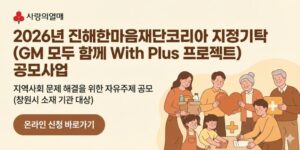 2026년 진해한마음재단코리아 지정기탁(GM 모두 함께 With Plus 프로젝트) 공모사업은 창원시 관내 사회복지시설·기관 및 단체를 대상으로 지역 복지 현안 해결을 위한 자유주제 공모형 사업을 지원하는 사업이다. 프로그램 및 기능보강 분야에 각각 최대 500만 원까지 지원하며, 총사업비는 5,400만 원 규모이다. 신청은 2026년 2월 12일부터 3월 13일 18시까지 온라인배분신청 시스템을 통해 접수한다.
