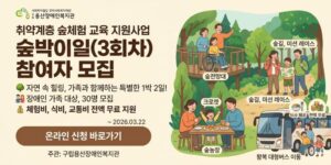 [서울]2026년 취약계층 숲체험 교육 지원사업 – 숲박이일 3회차 모집 안내 (3월 22일 신청 마감)
