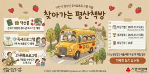 어린이와 청소년을 위한 독서문화 지원사업인 ‘찾아가는 평산책방’은 전국의 어린이·청소년 복지기관을 대상으로 도서와 독서 프로그램을 제공하는 사업이다. 선정된 기관에는 책 선물과 함께 독서 활동 프로그램 ‘책 속 보물찾기’가 지원되며, 문화 프로그램으로 이종일 선생님과 함께하는 노래 교실도 진행된다. 총 20개 기관을 선정하여 독서 경험 확대와 문화 활동 참여 기회를 제공하는 것을 목표로 한다.