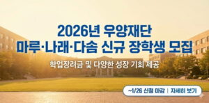 [전국]2026년 우양재단 마루ㆍ나래ㆍ다솜 신규 장학생 모집 (~1/26)
