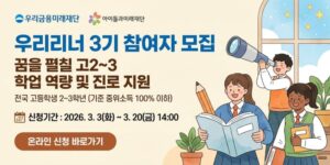 [전국]우리금융미래재단 우리러너 3기(고2, 고3) 참여자 모집공고(~3/20)