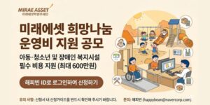 미래에셋 희망나눔 운영비 지원 공모는 아동복지시설과 장애인복지시설이 안정적으로 운영될 수 있도록 필수 운영비를 지원하는 사업이다. 임대료, 공과금, 시설 개보수, 물품 구입 등 현장에 필요한 비용을 최대 600만원까지 지원하며, 전국 해피로그 가입 단체를 대상으로 한다. 사업의 필요성과 기대효과 등을 종합적으로 평가하여 약 20개 기관을 선정할 예정이다.