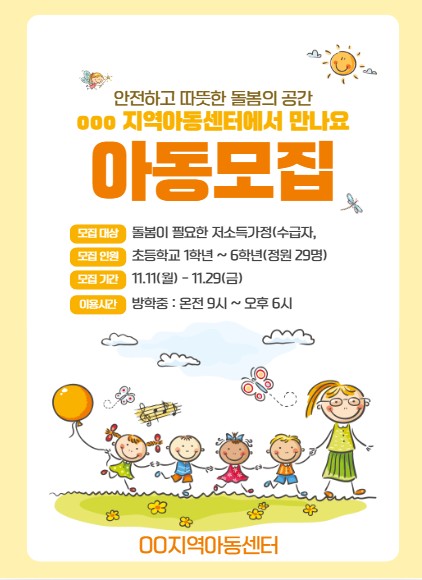아동모집, 후원자 모집등의 홍보용 전단지,포스터, 브로셔 게시판입니다.